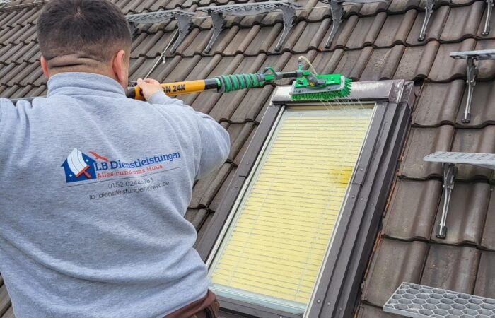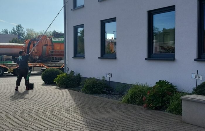 Reinigung mit ReinwassersystemStreifenfreie Reinigung mit Reinwassersystem für makellose Glas- und Oberflächen.